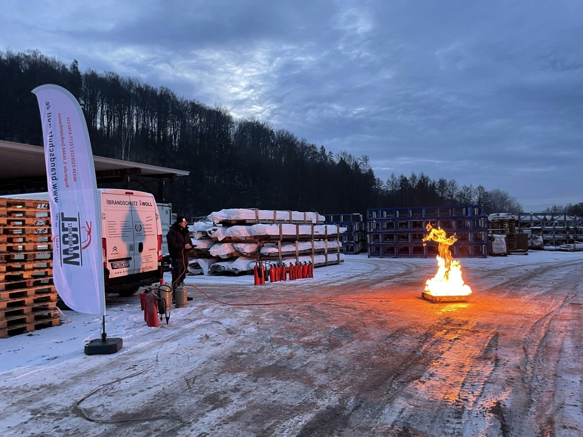 Simulation von Flächenbrand, Fettbrand, Explosion, Papierkorb, usw.
